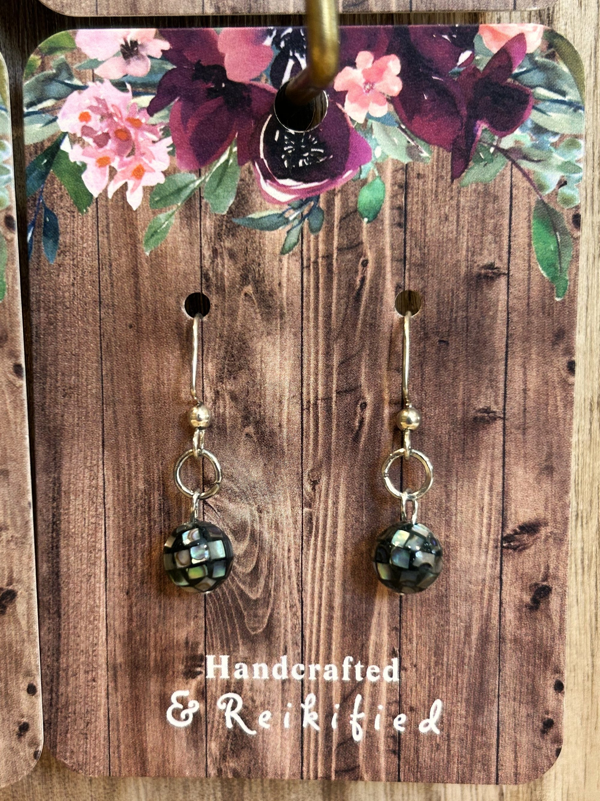 These earrings feature Abalone shell faceted beads with silver accents. Abalone is known as a powerful conduit for emotional healing, intuition, and spiritual protection.
